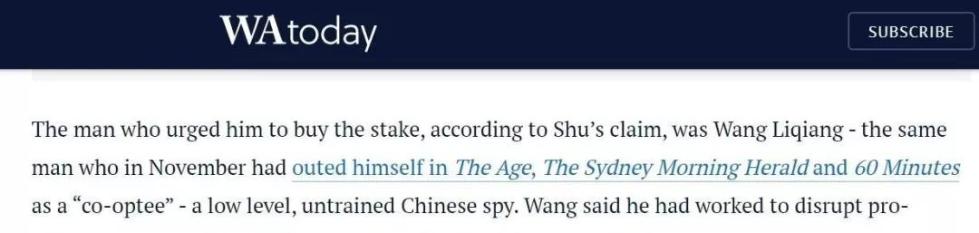 2月14日,澳大利亞當(dāng)?shù)孛襟w《WAtoday》刊登了一則報道,是記者就王立強(qiáng)有關(guān)詐騙的事對一位澳大利亞永久居民、華人束某的專訪。束某是誰呢,他是名被害人,于1月底向澳大利亞新南威爾士州最高法院,對王立強(qiáng)詐騙其大量錢財提出了巨額民事索賠。