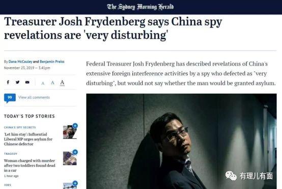 去年11月23日,澳大利亞《悉尼先驅(qū)晨報》拋出爆炸性新聞《潛伏香港的中國特工王立強逃到澳大利亞》,報道稱,王立強向澳大利亞安全情報組織(ASIO)爆料,自己參加過的中方行動中,曾進入臺灣幫助大陸滲透,支持國民黨候選人,影響2020年臺灣選舉,以阻止民進黨蔡英文連任。