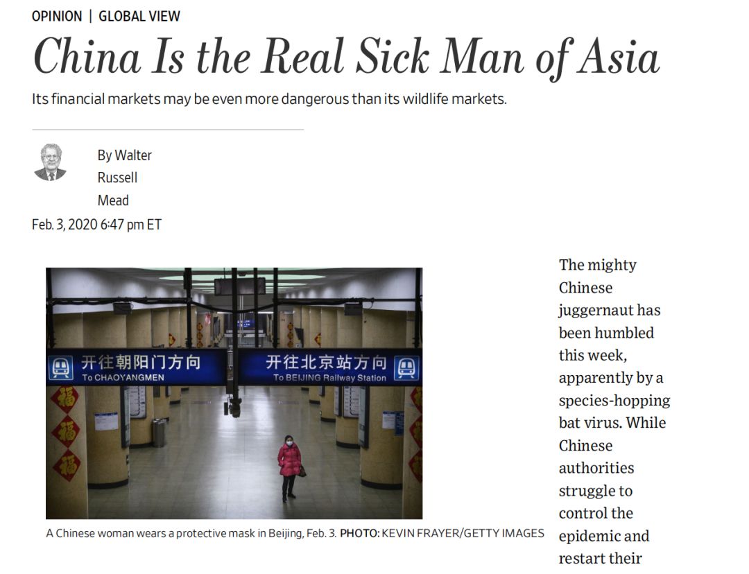 華爾街評論用“亞洲病夫”的標題進行種族歧視