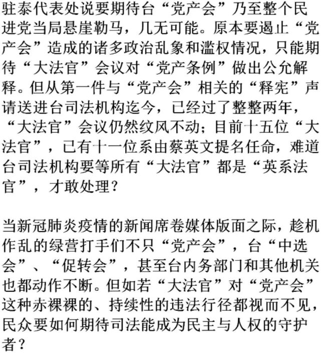 據(jù)臺灣媒體報道,民進(jìn)黨內(nèi)“英系”人馬蔡易余、莊瑞雄以及民代陳亭妃等提案聲稱,鑒于臺灣地區(qū)與大陸的關(guān)系已不再以“國家統(tǒng)一”作為唯一最終目標(biāo),為因應(yīng)臺灣社會發(fā)展,應(yīng)修正“兩岸人民關(guān)系條例”,刪除“國家統(tǒng)一前”等字眼。臺立法機構(gòu)8日一讀通過該提案,并交付“內(nèi)政委員會”...