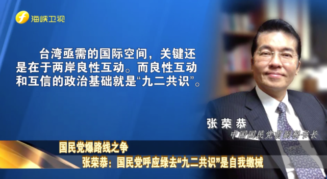 國民黨前副秘書長張榮恭表示,臺灣亟需的國際空間,關(guān)鍵還是在于兩岸良性互動。而良性互動和互信的政治基礎(chǔ)就是“九二共識”。扁、蔡就是沒有取代的方案,才會造成兩岸僵持對立,危及臺灣安全。國民黨既擁有可行之道,自應(yīng)堅(jiān)持。怎么能在蔡英文說它是歷史事實(shí),即跟著說是歷史事實(shí);蔡英文要求各政黨不要再講“九二共識”,也跟著噤聲不強(qiáng)調(diào),等于自我繳械。