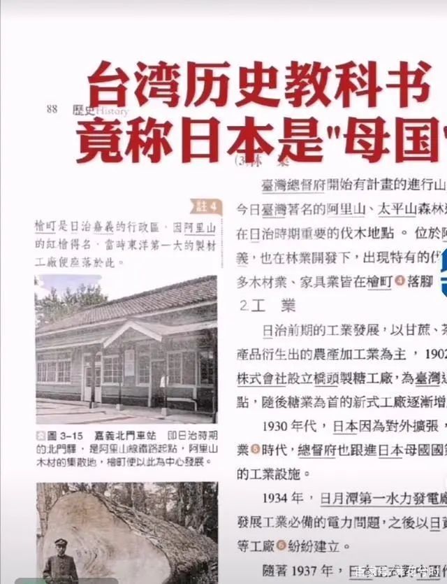 島內(nèi)統(tǒng)派青年張惠珊講島內(nèi)教科書這樣描述日本侵華占領(lǐng)臺灣的這段歷史: