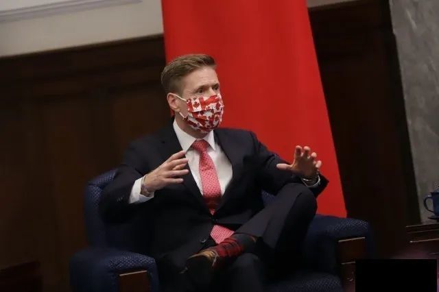 照片中,芮喬丹正向而坐,斜眼看向蔡英文;蔡英文呢,身體微傾,畢恭畢敬地面向芮喬丹。而芮喬丹的二郎腿似乎也說明了會見雙方的位置關(guān)系:蹺起來的是他自己,代表著高高在上;另一條腿著地,踩著的仿佛就是蔡英文領(lǐng)導(dǎo)下的臺灣。