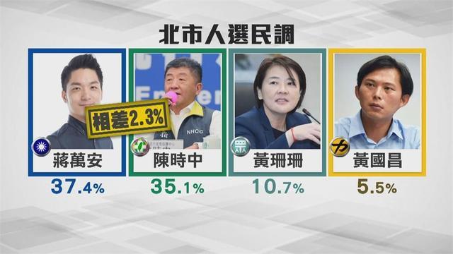 《ETtoday新聞云》調(diào)查結(jié)果顯示,在只有藍綠對決的局勢下,若2022臺北市長是由蔣萬安與陳時中兩人藍綠對決,蔣萬安以43.7%的支持度勝過陳時中的39.1%,兩人差距4.6%。