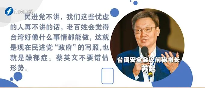 延續(xù)馬英九此前的告誡,蘇起再度對兩岸情勢發(fā)出警語。有臺媒指出,蘇起的話綠營人士聽來或許刺耳,但近期臺海、南海軍事動作不斷是不爭的事實,不然臺防務部門和臺外事部門不會聯(lián)袂召開臨時記者會。對此,臺灣地區(qū)前副職領(lǐng)導人呂秀蓮除了呼吁兩岸一定要改善關(guān)系、不必再怒目相向外,也再度用“兵兇戰(zhàn)危”一詞,向民進黨當局敲響警鐘。