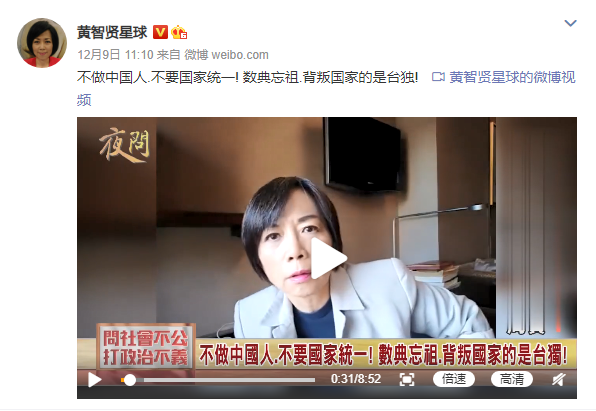 黃智賢,近年來(lái)最受大陸同胞尊敬佩服的臺(tái)灣政治評(píng)論員之一,她支持兩岸和平統(tǒng)一、支持“一國(guó)兩制”的立場(chǎng)無(wú)比堅(jiān)定。