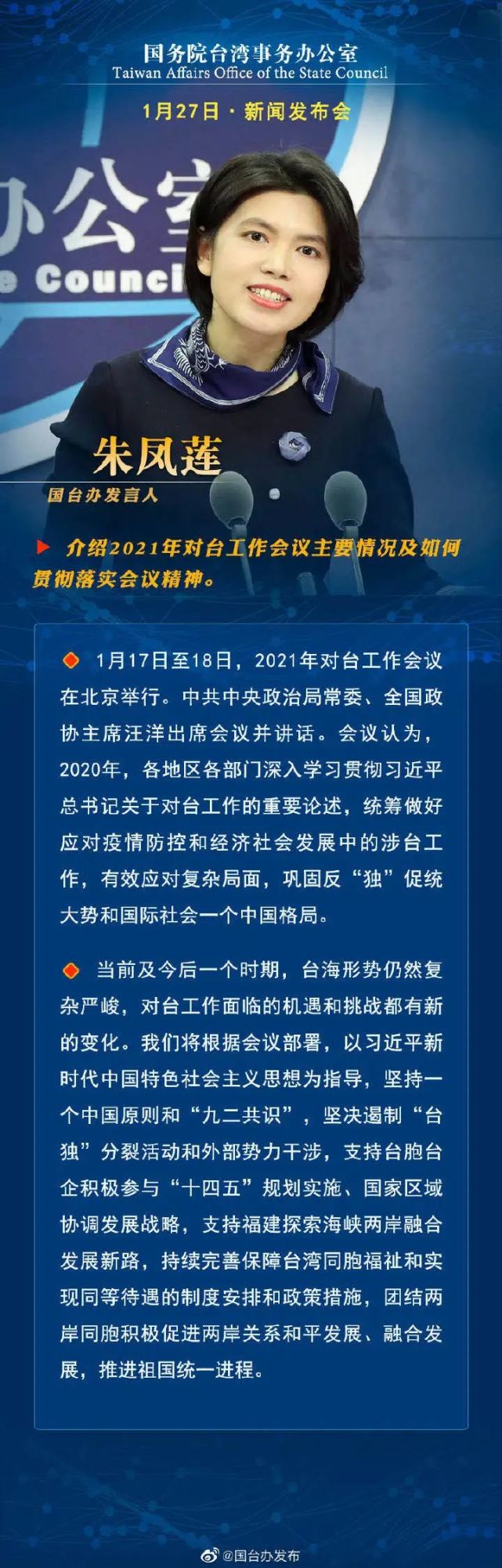 國臺辦發(fā)言人朱鳳蓮表示:關于解放軍在臺灣海峽進行實戰(zhàn)性演練,我們之前已經(jīng)多次表達過立場。臺灣是中國不可分割的一部分。從上世紀40年代末臺灣問題因內(nèi)戰(zhàn)產(chǎn)生以來,我們維護國家主權和領土完整的意志和決心一直堅定,從來沒有改變。為了有效應對外部勢力干涉和極少數(shù)“臺獨”分裂分子及其分裂行徑,我們不承諾放棄使用武力,保留采取一切措施的選項。這一點,在任何時候都不會改變。
