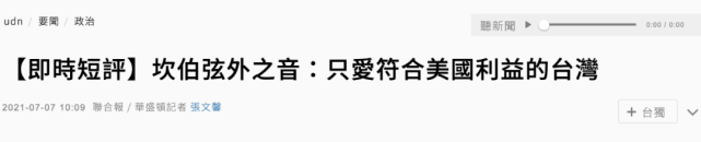 對坎貝爾的這番話,臺灣《聯(lián)合報》7日發(fā)表評論文章指出,這顯示出一個殘酷事實,那就是“美國當然‘愛臺灣’,但只愛符合美國利益的臺灣”。