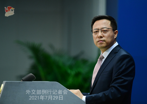 趙立堅再次強調(diào),美國有關方面應該充分認清臺灣問題的高度敏感性,切實恪守一個中國原則和中美三個聯(lián)合公報規(guī)定,遵守國際法和國際關系基本準則,停止推進審議有關涉臺消極議案,停止向“臺獨”勢力發(fā)出錯誤信號,停止助臺拓展所謂“國際空間”。