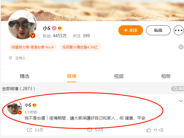 就在5日下午,事件主角小S在沉默數(shù)日后,本人也通過微博澄清,表示自己并非“臺(tái)獨(dú)”,算是給這場(chǎng)風(fēng)波暫時(shí)劃了一道休止符。
