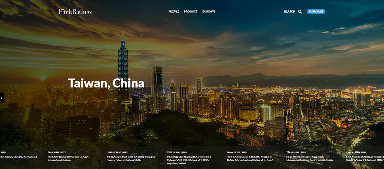 惠譽國際網(wǎng)站顯示的“中國臺灣”英文字樣