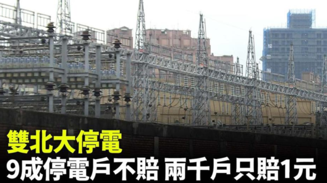 據(jù)臺(tái)媒報(bào)道,12日上午9點(diǎn)42分,臺(tái)電變電所5號(hào)變壓器故障跳脫,造成161KV系統(tǒng)及69kV系統(tǒng)全停,導(dǎo)致雙北(新北、臺(tái)北)逾三十萬用戶停電,臺(tái)電擬依營業(yè)規(guī)章賠償,高壓工業(yè)用戶停電十分鐘后按一小時(shí)計(jì)算,小商家與一般住宅用戶停電一小時(shí)以上才按一日計(jì)算;但高壓用戶停電未滿十分鐘不計(jì)算、小商家與一般住宅用戶停電未滿一小時(shí)不計(jì)算。