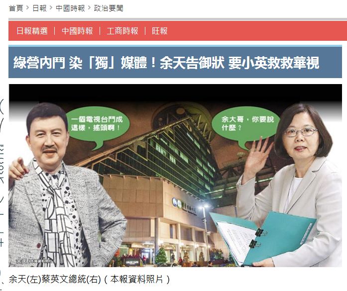 在島內(nèi),反“臺獨(dú)”的華視總經(jīng)理郭建宏近日遭到公司董事會拔除,引爆臺灣公共廣播集團(tuán)的內(nèi)斗乃至民進(jìn)黨內(nèi)的爭論。因?yàn)檎尾倥?,郭建宏?dāng)選之日,反而為華視“染獨(dú)”揭開序幕。事件的發(fā)展令民進(jìn)黨新北市主委余天都看不下去,跑到臺灣地區(qū)領(lǐng)導(dǎo)人蔡英文面前去告狀,卻遭到蔡英文的冷語回應(yīng):“不要跟我“告御狀”。
