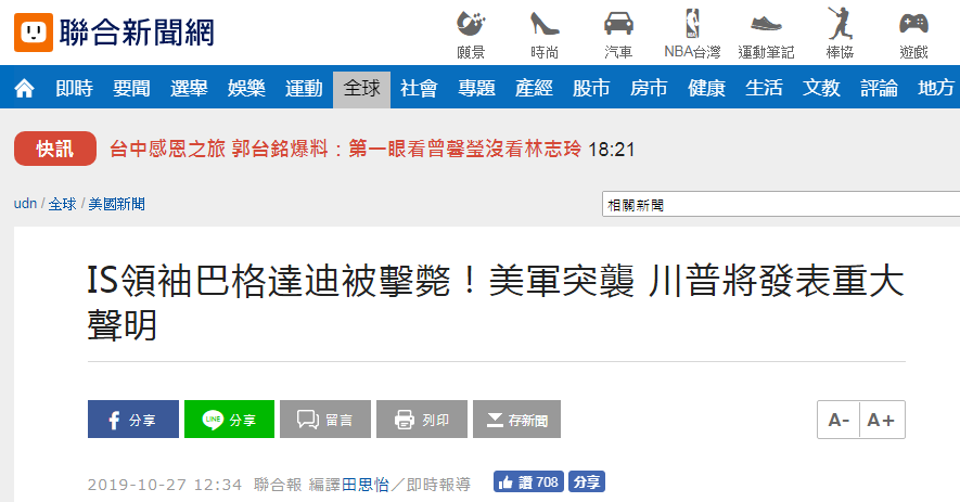 至于島內(nèi)網(wǎng)絡(luò)上的真實情況,除了有網(wǎng)友疑惑特朗普這篇“語帶玄機(jī)”的推文中所指的“大事”到底是什么,也有人認(rèn)為,確實很可能是巴格達(dá)迪死亡的傳聞有關(guān)。