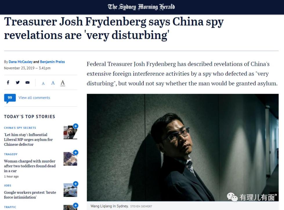 11月下旬,詐騙犯王立強接受澳大利亞多家媒體采訪,承認所謂“間諜”身份,自稱服務于中國人民解放軍總參謀部,曾負責在香港的情報活動,并在臺灣地區(qū)活動,成功影響了2018年臺灣的選舉,更企圖影響即將到來的2020年臺灣“大選”,幫助國民黨勝選云云……其向澳大利亞“投誠”,請求澳大利亞政府提供政治庇護。