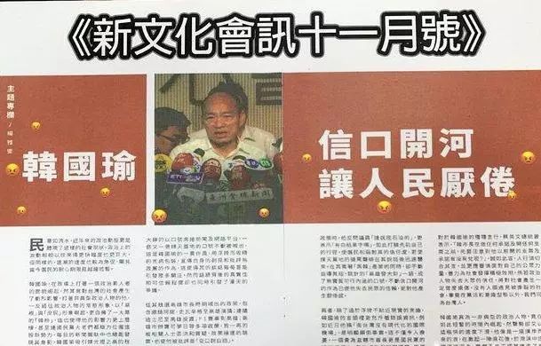 新文化基金會(huì)刊物批評(píng)韓國(guó)瑜、郭臺(tái)銘。(圖/中評(píng)社)