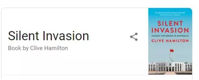 圖為周安瀾的老師Clive Hamilton撰寫的反華書籍,稱中國在“悄悄入侵”澳大利亞