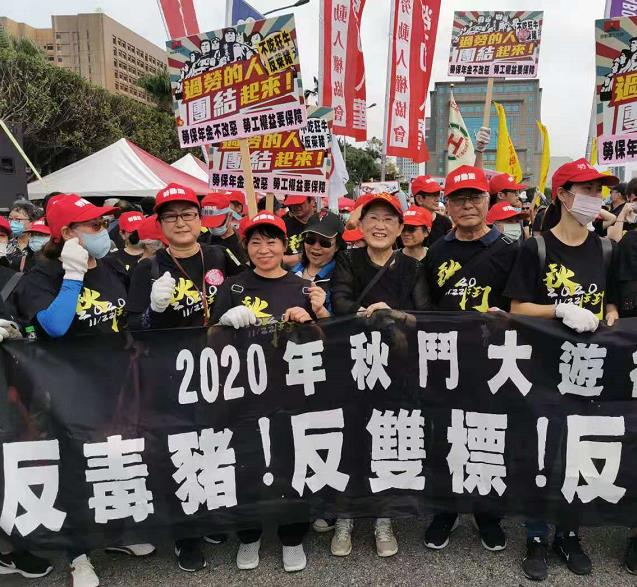 這次“秋斗”訴求“反毒豬、反雙標(biāo)”。這是蔡英文連任后,民間團(tuán)體和政黨首度集結(jié)的大型抗議活動(dòng),現(xiàn)場(chǎng)數(shù)萬(wàn)人上街。中國(guó)統(tǒng)一聯(lián)盟黨主席紀(jì)欣、勞動(dòng)黨主席吳榮元等統(tǒng)派人士也上街表達(dá)對(duì)蔡當(dāng)局的不滿。