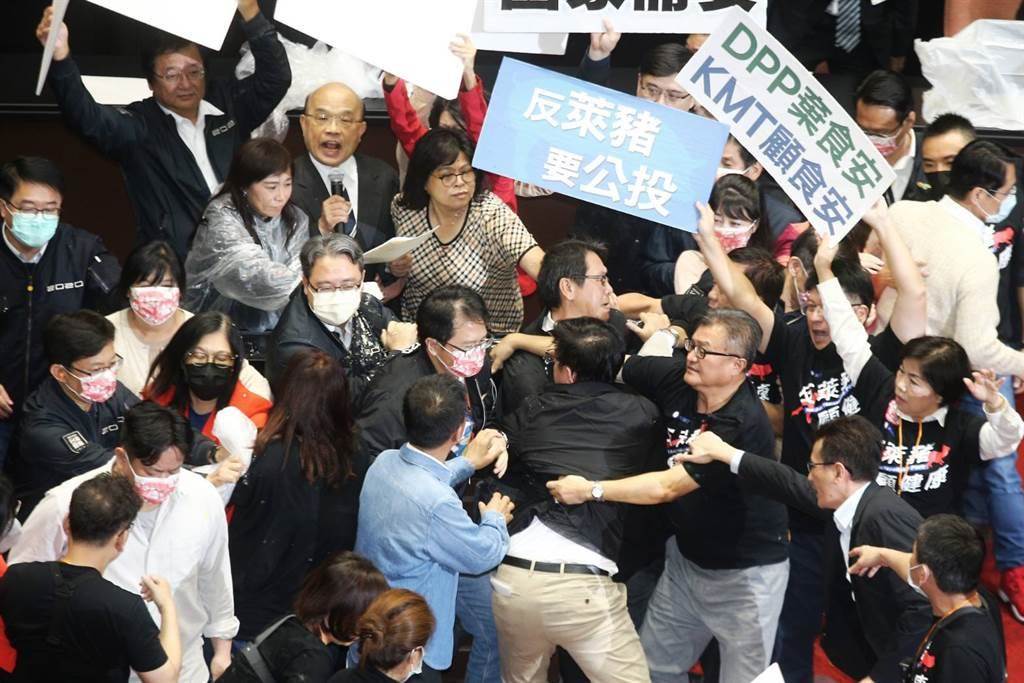民進黨當(dāng)局放寬美豬進口,中國國民黨“立委”丟豬內(nèi)臟及豬內(nèi)臟,杯葛“行政院長”蘇貞昌施政報告,朝野爆發(fā)沖突。根據(jù)《聲量看政治》網(wǎng)站分析,政黨總聲量以國民黨56.88%最高,但負面形象不少,其次是民進黨占35.21%,聲量相對比國民黨小。