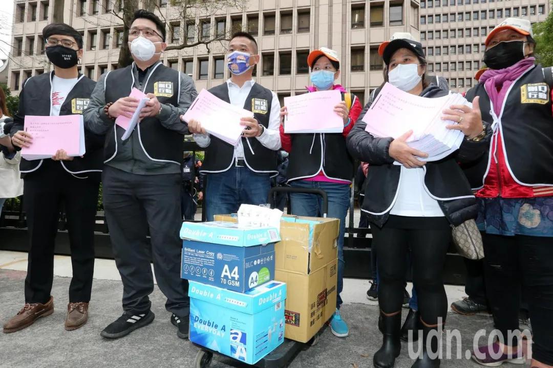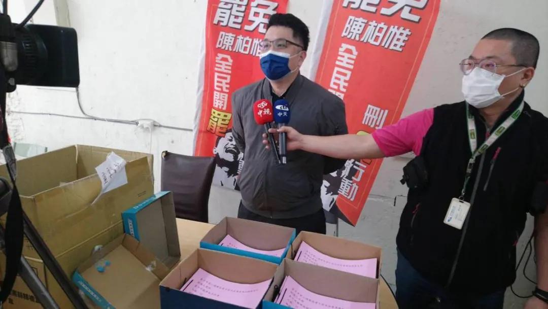 近日,臺(tái)中市龍井區(qū)居民楊文元成立“刪Q總部”發(fā)起罷免陳柏惟活動(dòng),今天(8日),“刪Q總部”成員將4357份第一階段罷免提議書(shū)送到臺(tái)“中選會(huì)”。