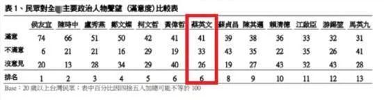 而臺灣地區(qū)領(lǐng)導(dǎo)人蔡英文則和民進(jìn)黨籍臺南市長黃偉哲同得41%并列第六;第八名為臺行政機(jī)構(gòu)負(fù)責(zé)人蘇貞昌的39%,民進(jìn)黨籍高雄市長陳其邁為38%排名第九;賴清德為36%排名第十。