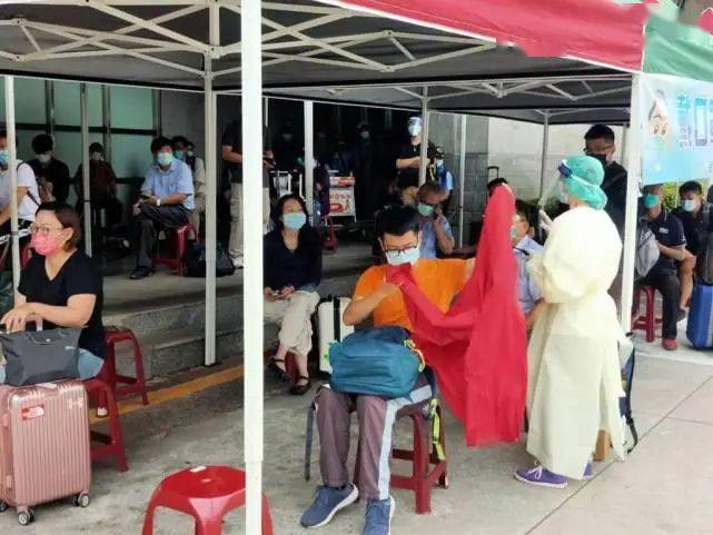 6月1日,抵達澎湖的旅客等待接受檢測(臺媒圖)