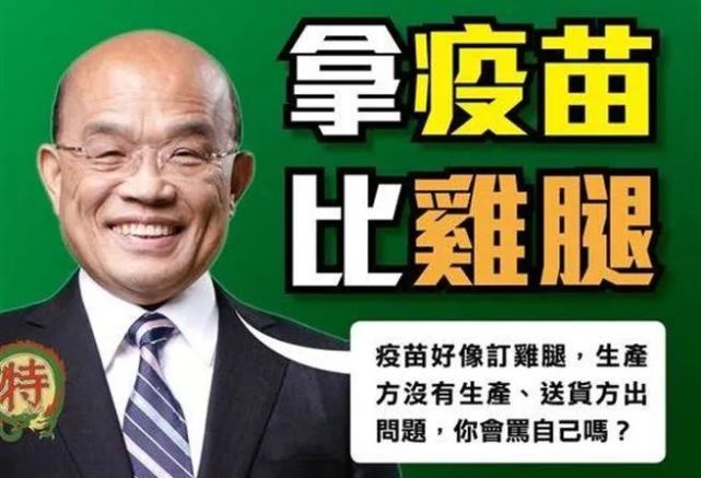 9日,臺(tái)行政機(jī)構(gòu)負(fù)責(zé)人蘇貞昌接受藍(lán)營(yíng)民代楊瓊瓔質(zhì)詢,在回應(yīng)島內(nèi)“到底何時(shí)能取得疫苗”時(shí)竟說(shuō)出,“就跟買冷凍雞腿一樣,我們有訂了,對(duì)方不出貨,我們難道要罵自己?jiǎn)?rdquo;?