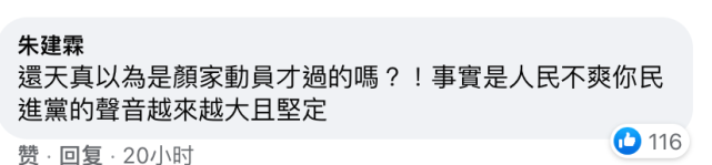 還有網(wǎng)友痛批:“還天真地以為是顏家動(dòng)員才過(guò)的嗎?事實(shí)是人民不爽你民進(jìn)黨的聲音越來(lái)越大且堅(jiān)定。”