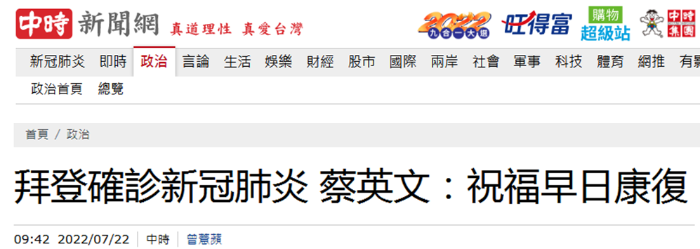 美國政客一有點風吹草動,平時“神隱”的蔡英文反應(yīng)超神速?據(jù)臺灣“中時新聞網(wǎng)”消息,美國白宮宣布美國總統(tǒng)拜登確診消息,蔡英文辦公室發(fā)言人張惇涵今(7月22日)表示,臺灣地區(qū)領(lǐng)導人蔡英文已請臺當局外事主管部門負責人吳釗燮及臺當局“駐美代表”蕭美琴向美國政府致以誠摯關(guān)心之意,并祝福拜登總統(tǒng)早日康復。