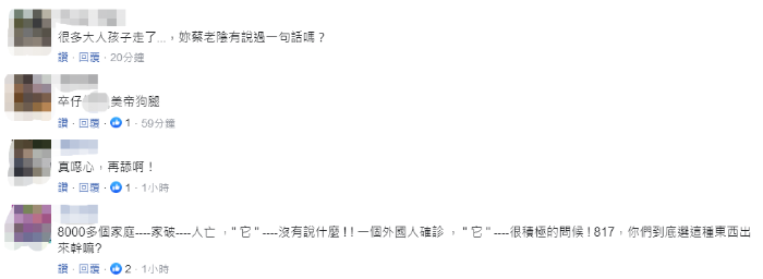 蔡英文的“祝福”引起島內(nèi)網(wǎng)友反彈,紛紛留言嘲諷“很多大人孩子走了,你有說過一句話嗎?”、“美帝狗腿”……