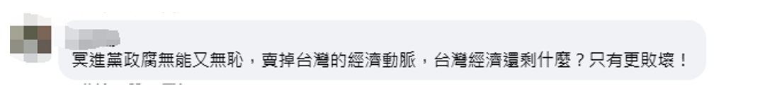 更有網(wǎng)友批評(píng)民進(jìn)黨當(dāng)局“無(wú)能又無(wú)恥”,“賣掉臺(tái)灣的經(jīng)濟(jì)動(dòng)脈,臺(tái)灣經(jīng)濟(jì)還剩什么?只有更敗壞”!↓