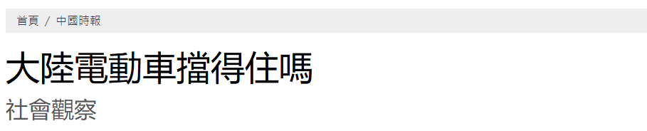 對(duì)此,有臺(tái)灣媒體刊文分析指出,這款隸屬大陸車(chē)企旗下的汽車(chē)在臺(tái)灣上市,盡管稅后售價(jià)比在大陸貴,但臺(tái)灣車(chē)市仍算得上是高性價(jià)比產(chǎn)品,反映了臺(tái)灣車(chē)價(jià)的虛高與不合理。而在25日開(kāi)幕的北京國(guó)際車(chē)展上,大陸生產(chǎn)的電動(dòng)汽車(chē)不僅是全場(chǎng)焦點(diǎn),更引發(fā)島內(nèi)輿論關(guān)注。到場(chǎng)的臺(tái)灣媒體贊嘆“大陸電動(dòng)汽車(chē)迅速崛起”的同時(shí),也發(fā)問(wèn):“大陸電動(dòng)汽車(chē)啥時(shí)候能賣(mài)進(jìn)臺(tái)灣?”