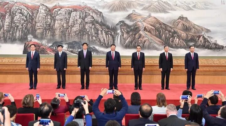隨著舉世矚目的中國(guó)共產(chǎn)黨第十九次全國(guó)代表大會(huì)勝利閉幕,全世界都關(guān)注著新一屆中共中央政治局常委的亮相。今天,中共十九屆一中全會(huì)選舉習(xí)近平同志繼續(xù)擔(dān)任中共中央委員會(huì)總書(shū)記,與李克強(qiáng)、栗戰(zhàn)書(shū)、汪洋、王滬寧、趙樂(lè)際、韓正,共同組成領(lǐng)航民族復(fù)興偉業(yè)的新一屆中央政治局常委,這個(gè)帶領(lǐng)億萬(wàn)人民走向民族復(fù)興中國(guó)夢(mèng)的新時(shí)代“夢(mèng)之隊(duì)”,發(fā)出了“新時(shí)代要有新氣象,更要有新作為”的政治宣言,開(kāi)啟了圓夢(mèng)復(fù)興的新征程。