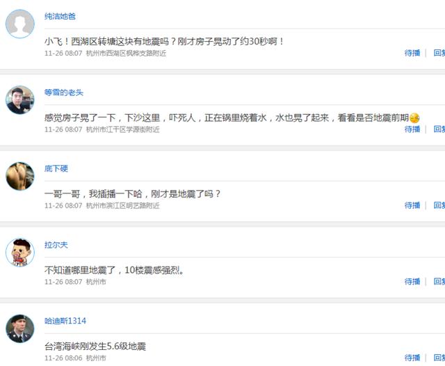杭州網(wǎng)友表示震感強(qiáng)烈