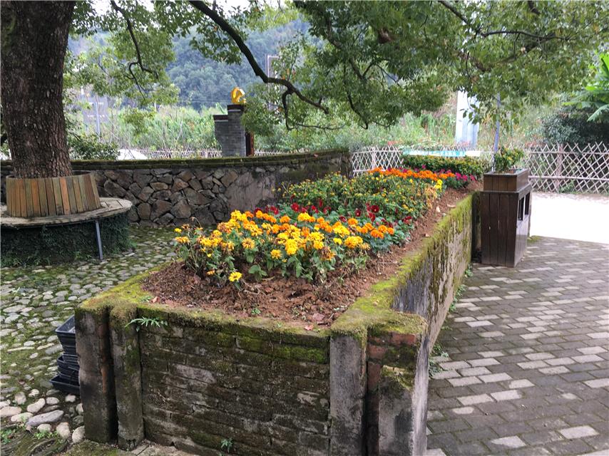 黃巖沙灘村,豬槽變身花欄。劉慧攝。