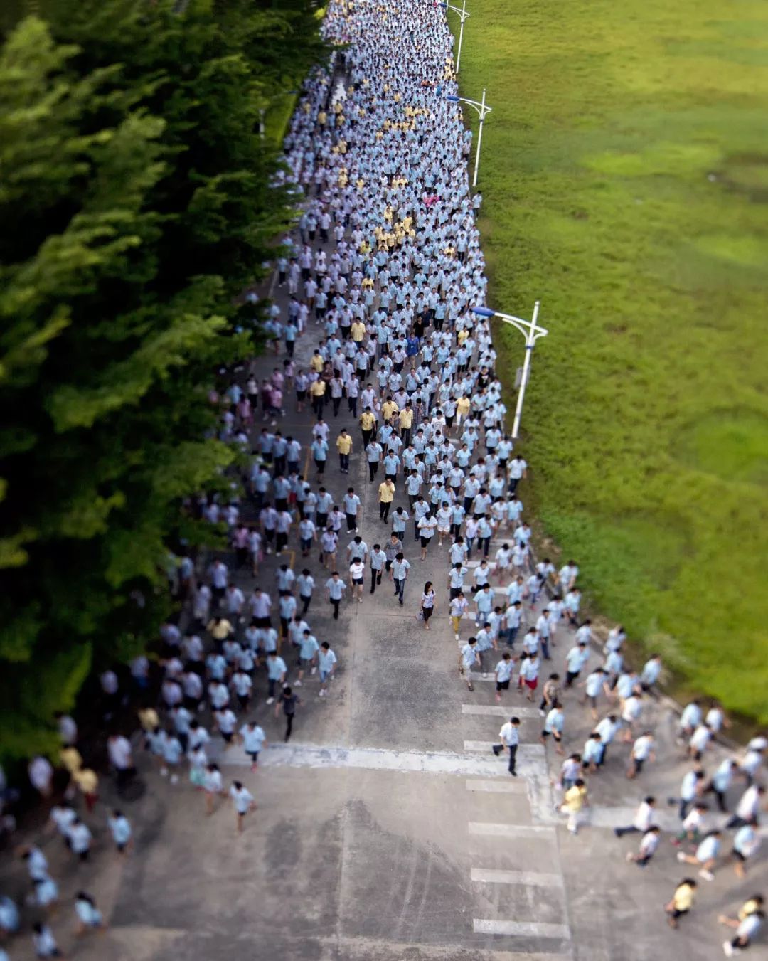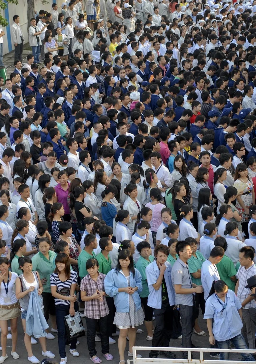 (2012年東莞一家臺資工廠,早課后工人走向車間上班,形成了一個(gè)“人”字,圖片源自@VCG)