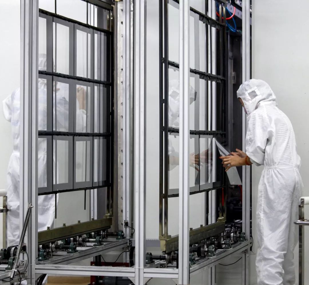 (河南三門峽,工人們正在生產(chǎn)透明導(dǎo)電玻璃,圖片源自@VCG)