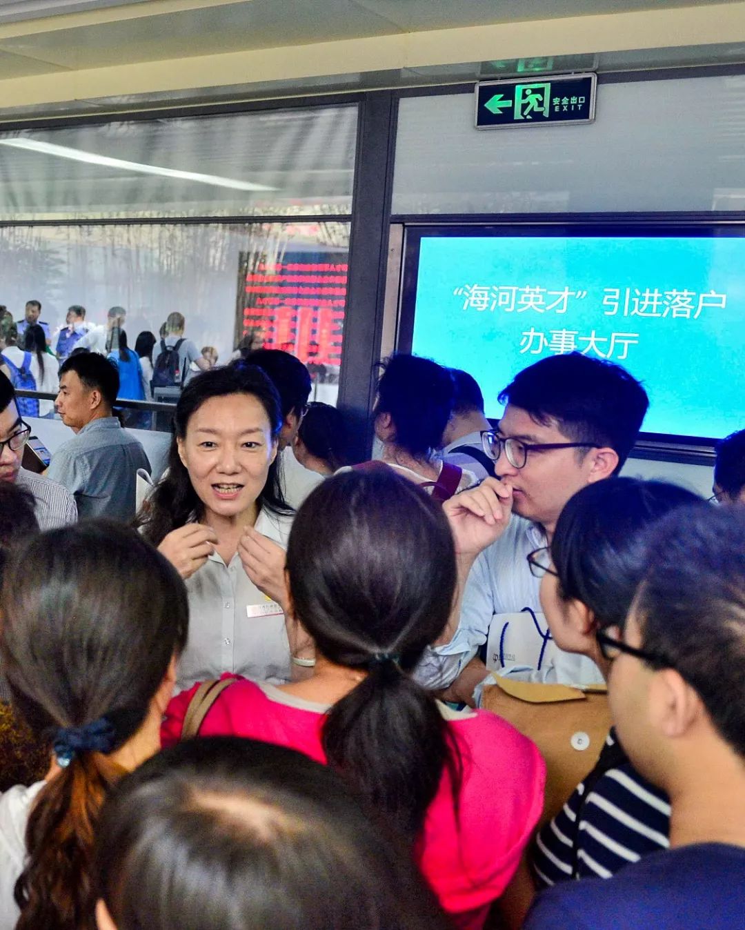(2018年天津開啟“海河英才”搶人大戰(zhàn),落戶辦事大廳內(nèi)外排滿了咨詢、申請的群眾,工作人員在不厭其煩地回答著大家的各種問題,圖片源自@VCG)