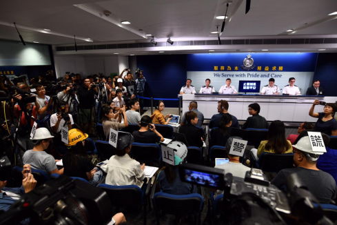 主持記者會的警司高振邦隨即表示,今天是警方記者會,目的是讓媒體和公眾了解來自政府的信息,而不是讓人來舉標(biāo)語或示威的。高振邦要求6位記者除下標(biāo)語,否則就要求他們離開,“這不是你們示威的地方,其他記者還想知道警方有什么消息要發(fā)布,你們沒有權(quán)力阻止其他記者采訪,也不能剝奪公眾了解警方發(fā)布消息的機(jī)會和自由”。