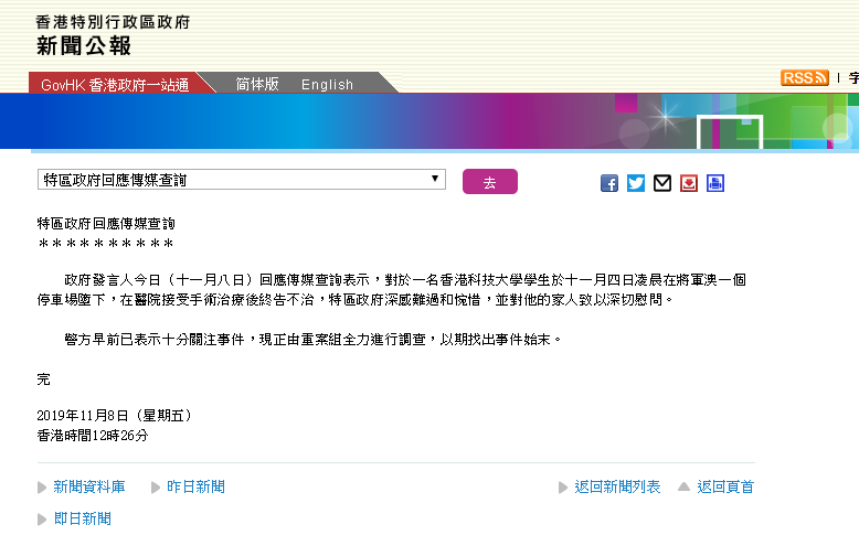 新聞公報還稱,警方早前已表示十分關(guān)注事件,現(xiàn)正由重案組全力進行調(diào)查,以期找出事件始末。