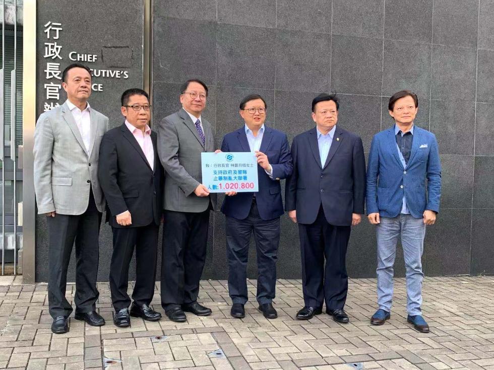 今日(11月8日)下午,“守護(hù)香港大聯(lián)盟”向香港特區(qū)行政長(zhǎng)官辦公室遞交百萬市民參與的“反黑暴”網(wǎng)上大聯(lián)署心聲。召集人黃英豪表示,大聯(lián)盟在10月上旬發(fā)起“反黑暴禁蒙面護(hù)家園”網(wǎng)上聯(lián)署,呼吁廣大市民共同支持《禁蒙面法》,向黑色暴力說“不”。