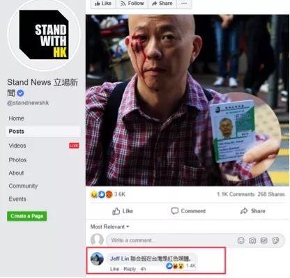 至于在最初報道陳競新被打的《立場新聞》的賬號下,那里的評論更加“刷新三觀”,比如在其這條新聞的評論部分,獲得最多1400條點贊的留言就寫道:聯(lián)合報在臺灣是紅色媒體”,明顯是在給“暴徒”毆打陳競新找借口和理由。