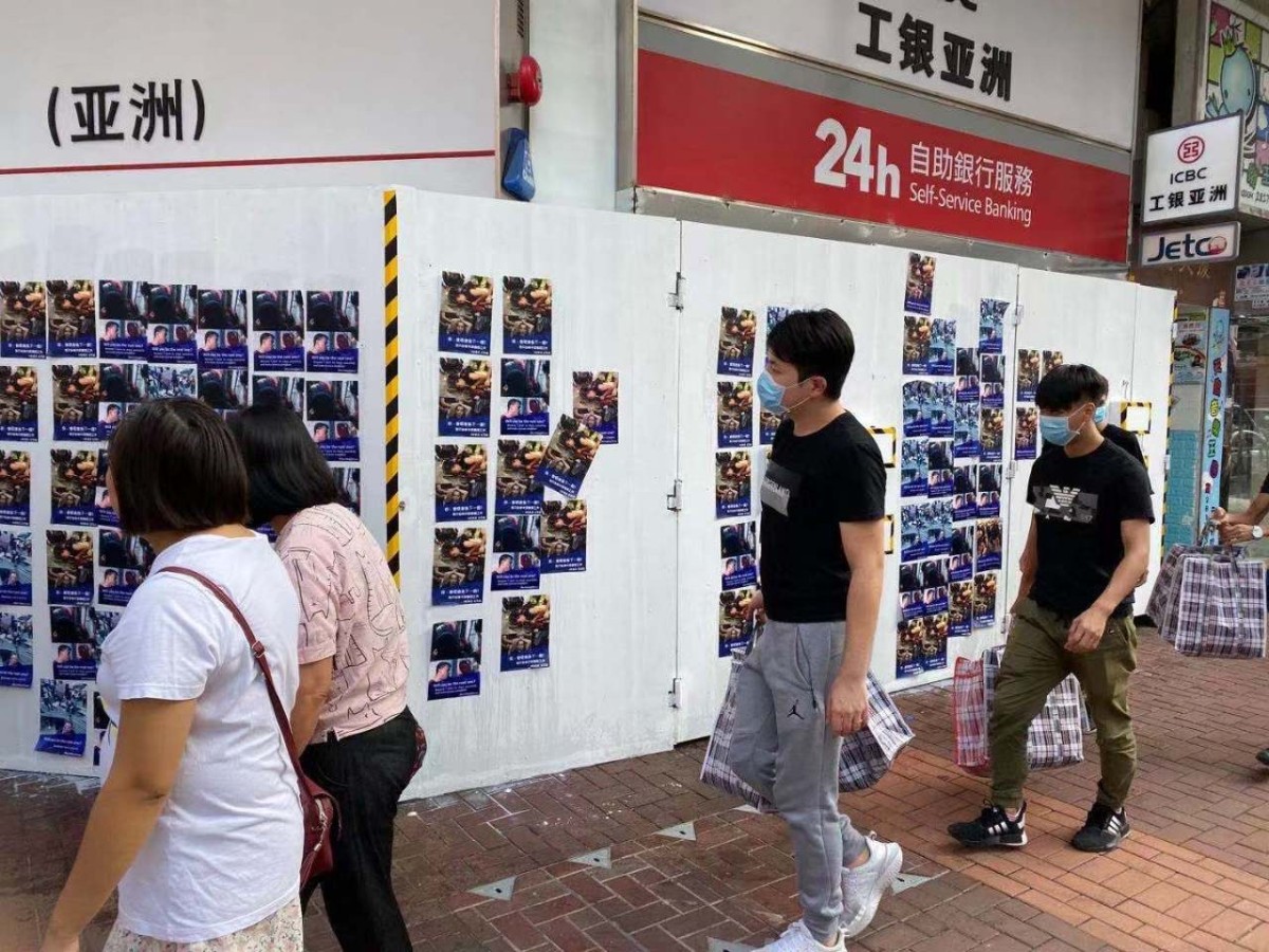 北京日報客戶端記者注意到,在部分遭到暴徒打砸后圍封木板的中資銀行和商店外,有人張貼了印有“反暴力”“護家園”等字樣的文宣海報,組成了一面面“正義墻”,吸引路人駐足圍觀,不少市民細看過后頻頻點頭或豎起拇指。