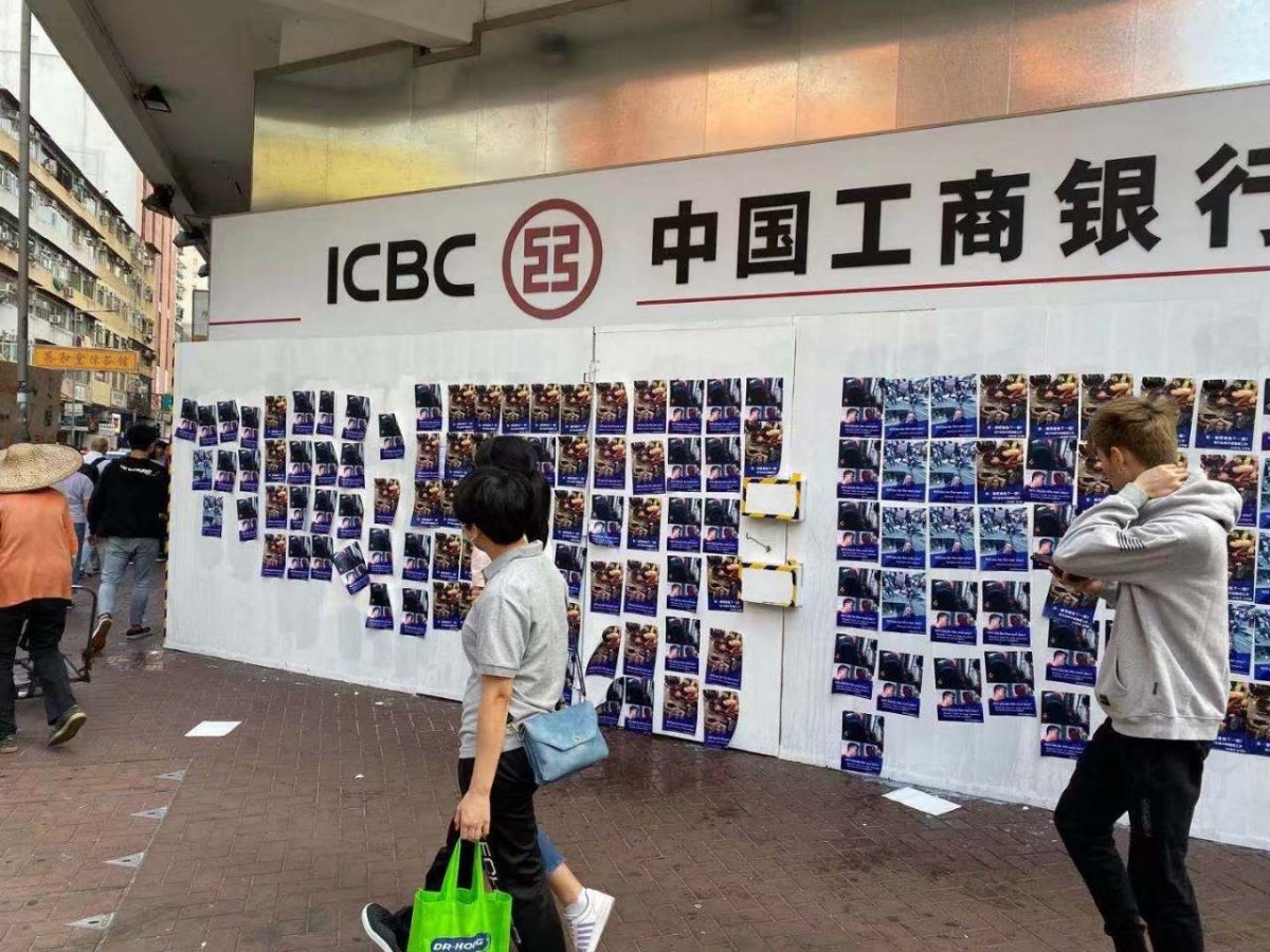 在一家中國銀行(香港)支行外,市民李先生看到海報后有些激動,“他們(暴徒)四處打砸縱火堵路,我們真的受夠了!這海報做得挺好,希望可以團結(jié)更多人,攜手止暴制亂。”