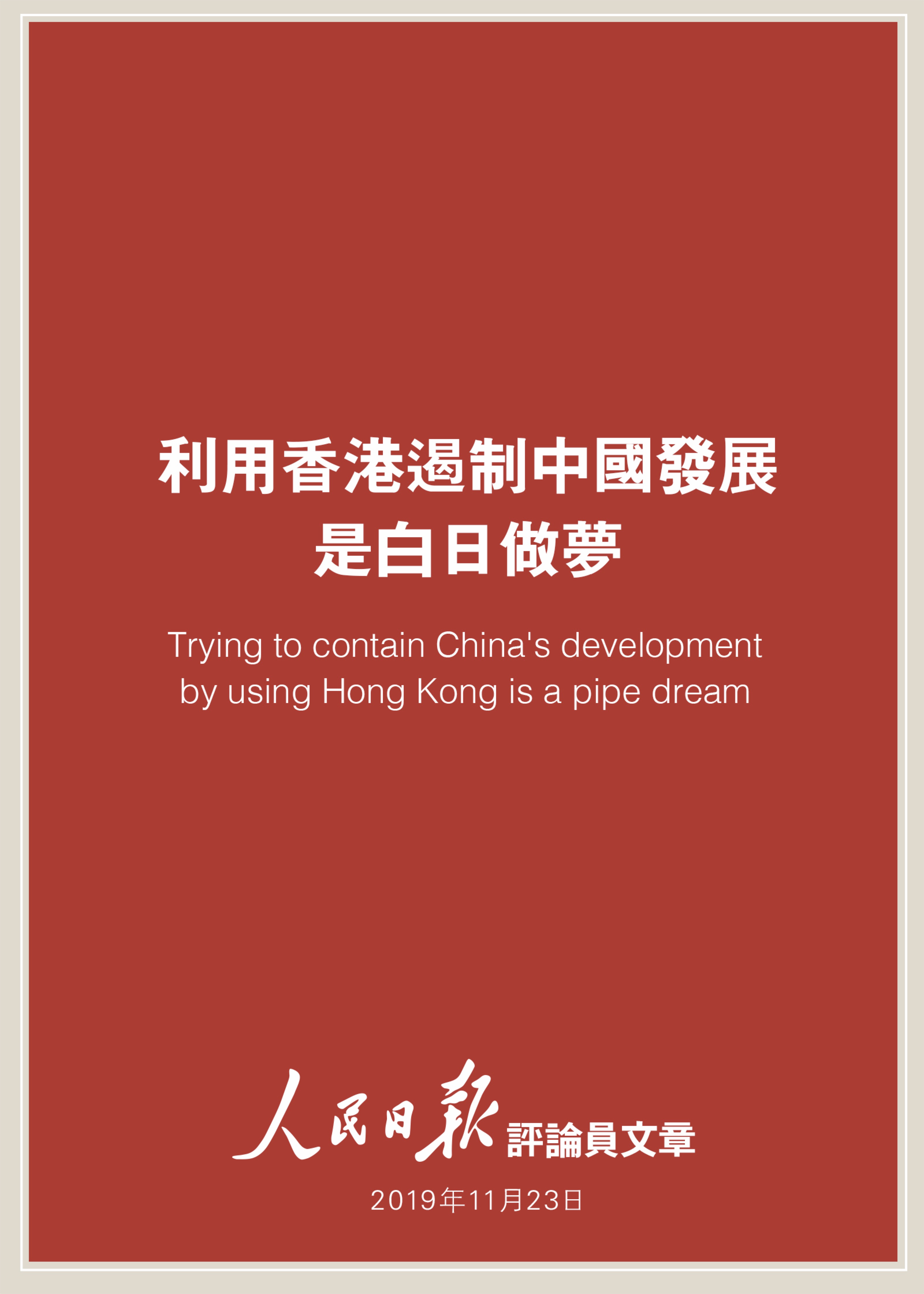 原標(biāo)題:《人民日?qǐng)?bào)評(píng)論員:利用香港遏制中國(guó)發(fā)展是白日做夢(mèng)》