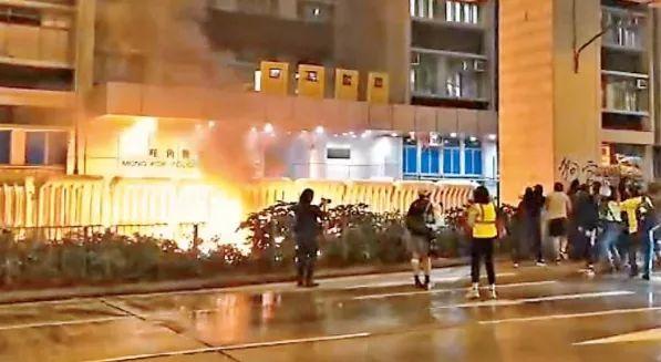 旺角警署,也曾被激進示威者狂擲汽油彈——