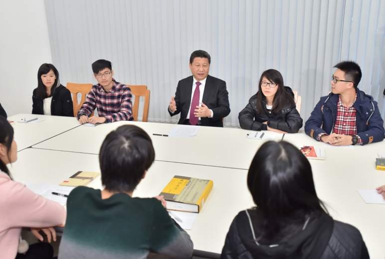 2014年12月20號下午,澳門大學(xué)橫琴校區(qū),鄭裕彤書院。幾十個師生正在教室里討論“中華傳統(tǒng)文化與當(dāng)代青年”,現(xiàn)場來了一位特殊的客人——習(xí)主席。