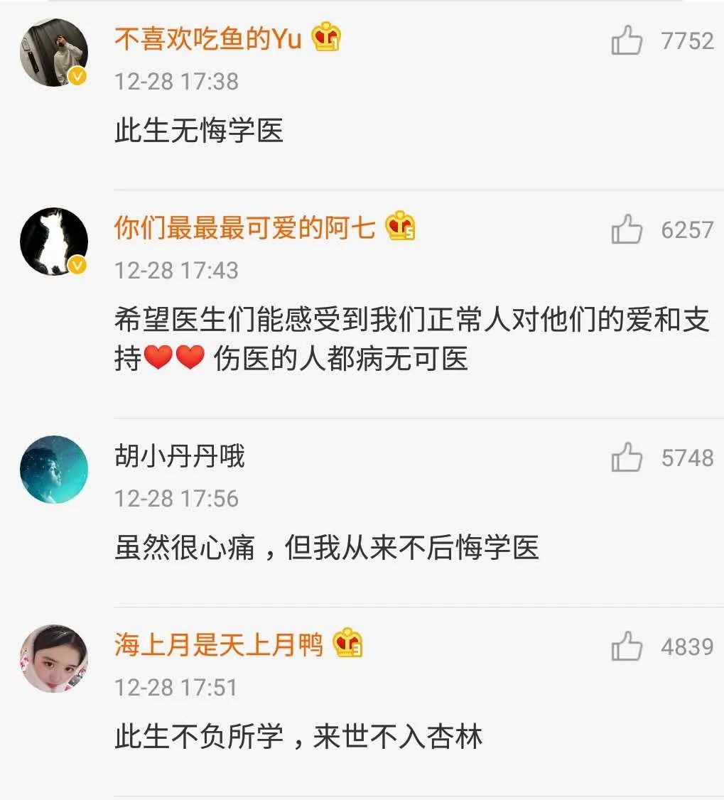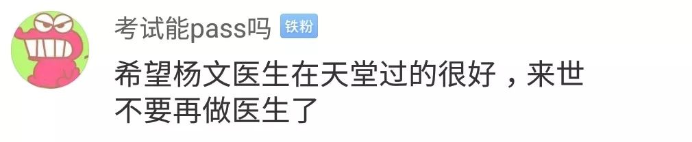在眾多網(wǎng)友評(píng)論中,有一網(wǎng)友說,“希望楊文醫(yī)生在天堂過得很好,來世不要再做醫(yī)生了”,這段評(píng)論也得到了很多醫(yī)生的回復(fù)……