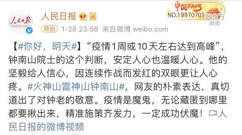 鐘南山院士表示:疫情什么時(shí)候達(dá)到高峰,很難絕對(duì)地估計(jì)。不過(guò)應(yīng)該在一周或者十天左右達(dá)到高峰,不會(huì)大規(guī)模增加了。
