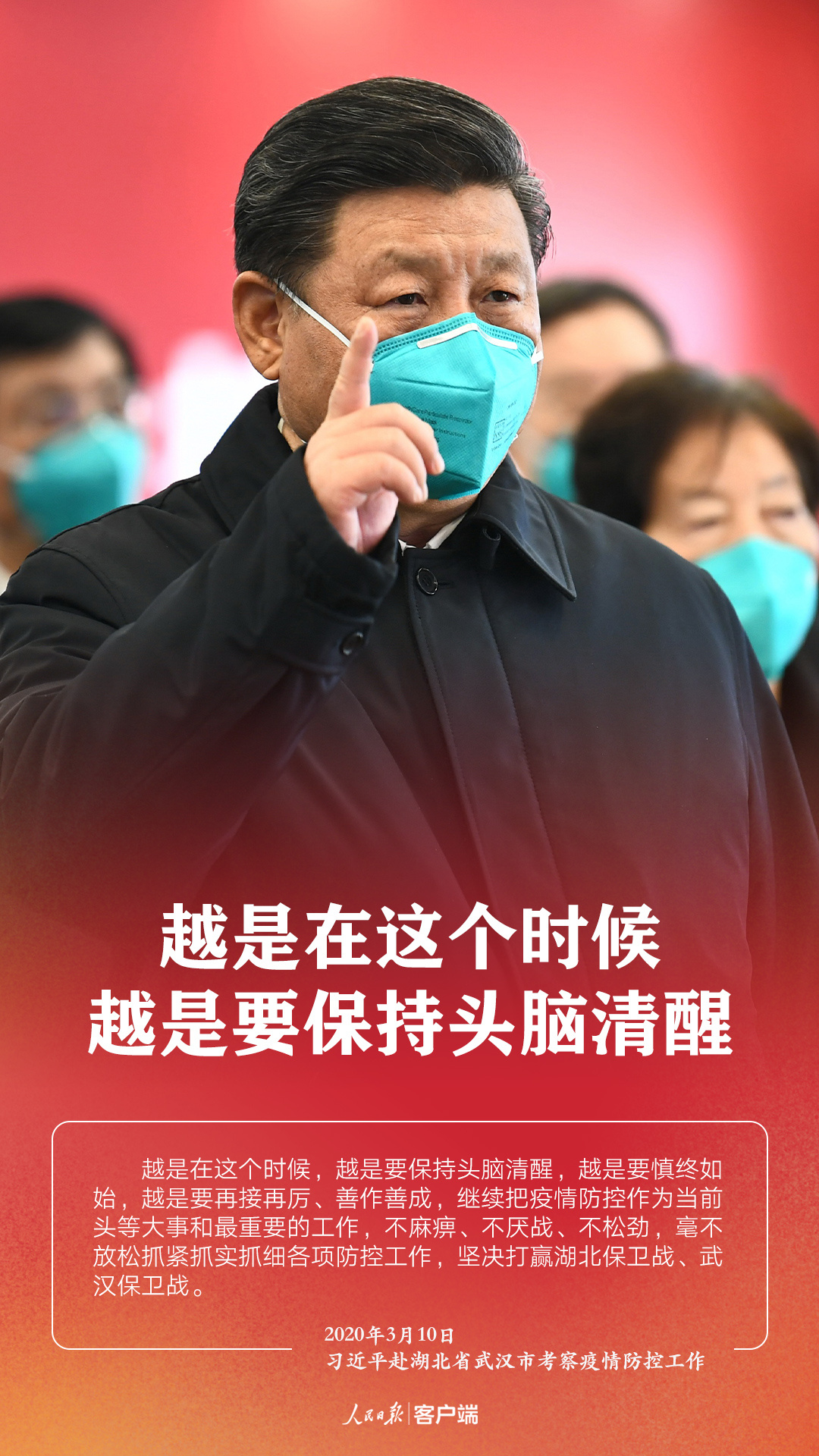 在抗擊新冠肺炎疫情的關(guān)鍵時刻,中共中央總書記、國家主席、中央軍委主席習(xí)近平10日專門赴湖北省武漢市考察疫情防控工作。他強(qiáng)調(diào)——